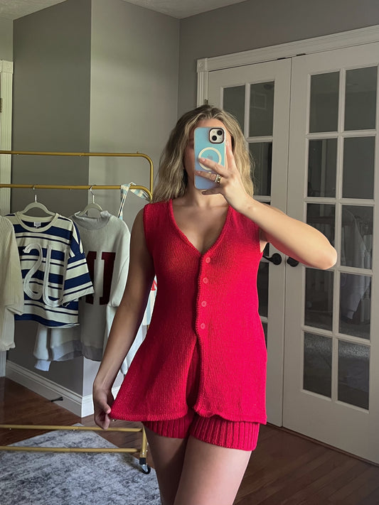 Red Hot Knitted Short Set